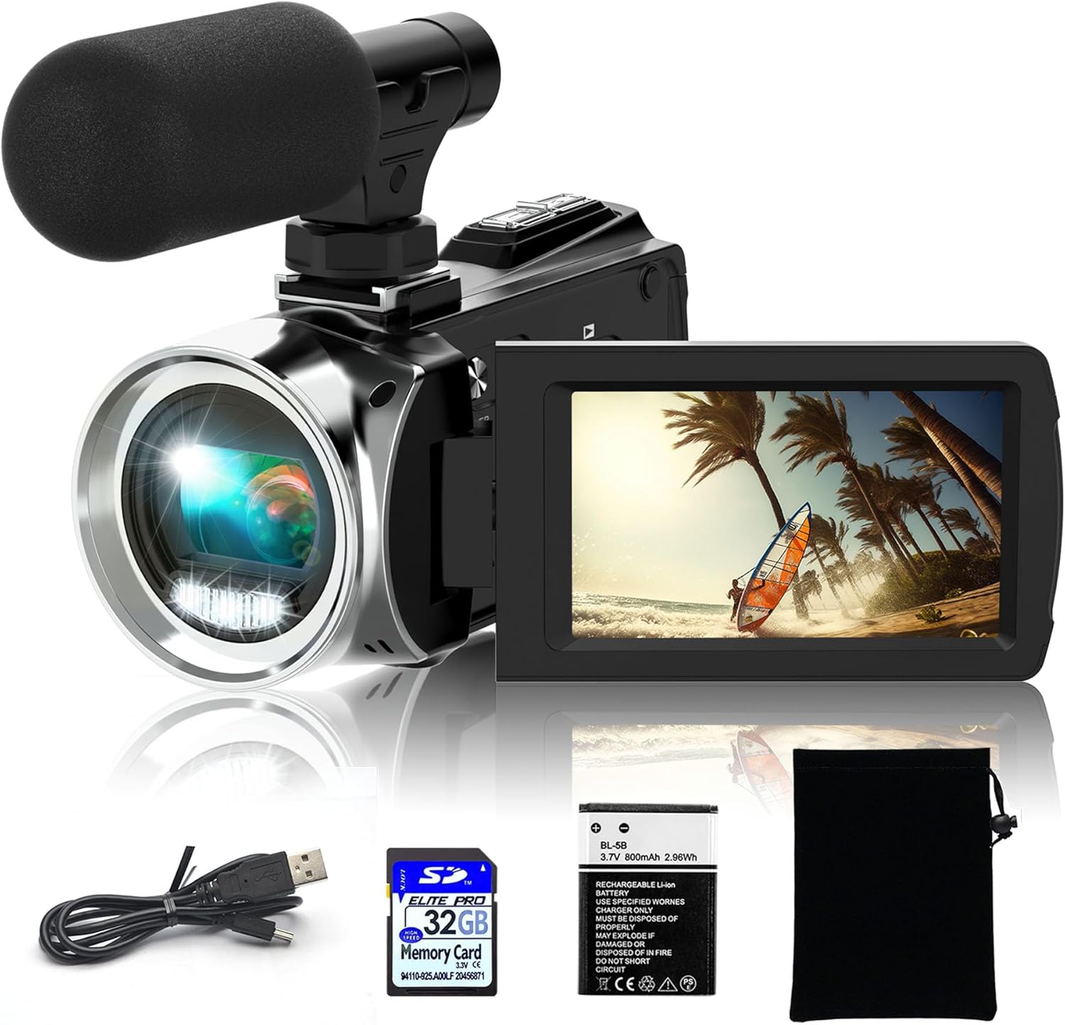 - 🎥【外接麥克風和長時間錄製】這款錄像機相機配有外部麥克風。 它可以拾取距離遠 0-3 公尺的聲音。 這款視頻博客相機配有 1050mAh 電池,充滿電的電池可使用 60-90 分鐘。 這款 youtube 攝影機可使用行動電源或 PC 充電;支援充電時錄製。 因此,不用擔心錄製時耗盡電量。 此部落格相機包含 32G SD 卡(最大至 256GB),請在使用前格式化 SD 卡。